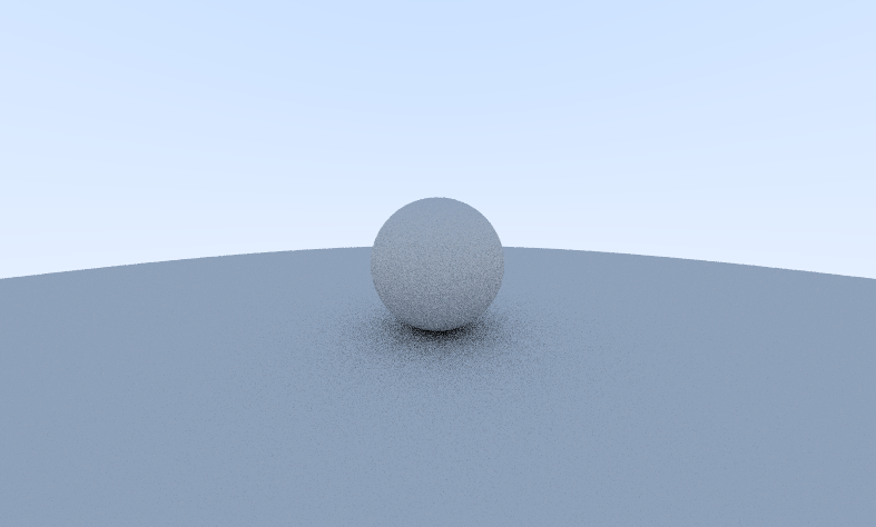 Since the number of samples is ever-increasing, this approach has the potential to run into floating-point issues when the number of samples in the running average becomes large. If you remove the if(prev.w > 5000.0) block and allow the ray tracer to run long enough, you’re likely to see little black dots show up in the image. These are caused by values becoming so high in the running average that they are no longer representable as floating-point numbers and end up as nan or inf. Capping the number of samples allows for a high quality render and also avoids these issues. The value can be adjusted up or down depending on scene and preference. There are almost certainly more robust ways to solve this issue, but in the spirit of simplicity, that will be outside the scope of this post.